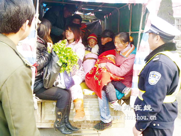 交警查到一辆载人农用车。