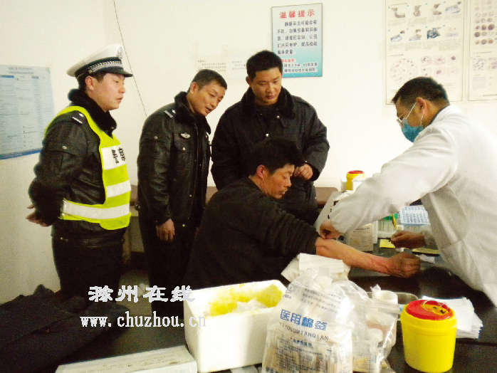 16时30分,记者赶到滁州市中西医结合医院,发现该司机仍不配合医生抽血,两位民警正苦口婆心劝说。闹腾了5分钟之后,医生终于成功抽取血样。抽完血后,男子依旧语无伦次,对民警和记者称兄道弟,被问及喝酒原因时,他说:“中午和朋友在一起,都是兄弟,你说能不喝吗?”
