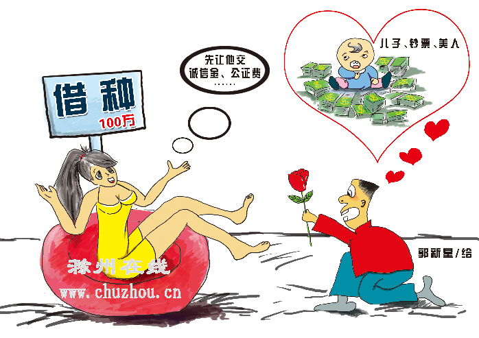 一天,根据小广告上留下的电话号码,王华用手机打过去。果然,电话里传来甜美的女性声音,介绍丈夫遇车祸身亡,自己继承大量遗产,唯一遗憾的是没有小孩,愿出100万元“借种”生子。