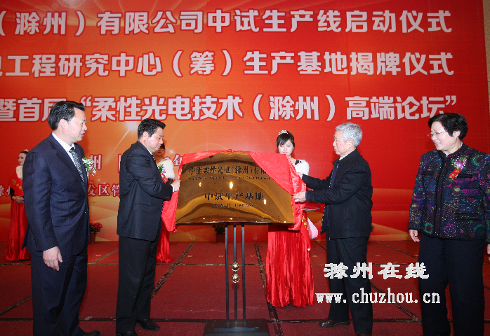 省市领导为柔性光电工程研究中心(筹)生产基地揭牌。李晓村摄