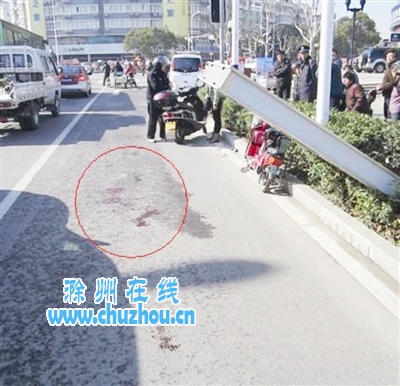 报料内容:近日,滁城丰乐大道五中路口附近,一名女子骑电动车撞上歪斜的路牌,当即头破血流休克在地。