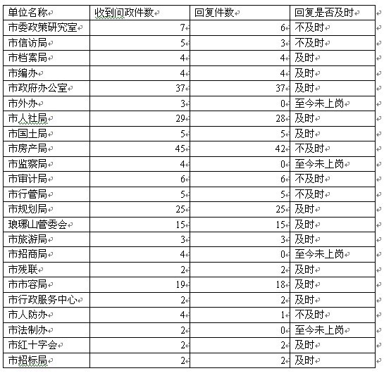 滁州市网络发言人平台自2月7日开通以来,网友发帖量超过1000条,涉及到106家单位,受到广大网民的关注,得到各单位的大力支持。在办理网民诉求过程中,能够及时回复办理的单位有:市政府办公室、市政协办公室、市委组织部、市档案局、市国土局、市妇联、市教育局、市公安局、市经信委、琅琊区、市二院、凤阳县等。