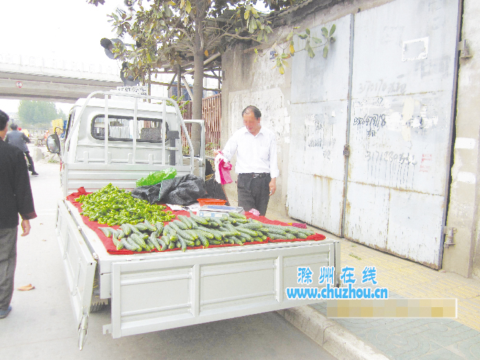 报料内容:近日,滁城紫薇北路光明园小区附近,一辆三轮车占道卖菜。