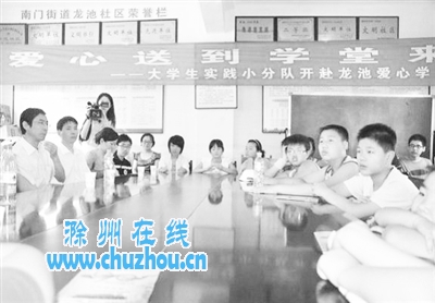 2011年6月,在琅琊区团区委、区文明办、滁州职业技术学院等多家单位的关心和支持下,龙池社区成立了一家“爱心学堂”,给留守孩子创造了一个有亲情、能依靠的“家”,也向社会吹响了奉献爱心的“集结号”。