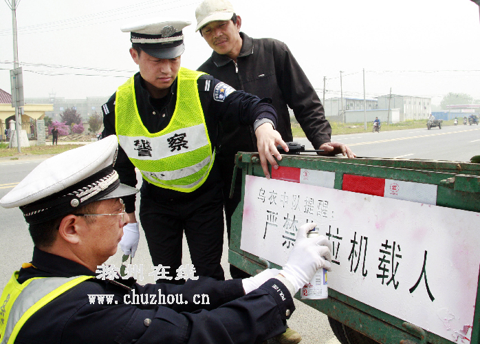 滁州:加强农机交通管理 2012-04-24 08:00 我要评论0 扫描到手持设备 字号: 近日在滁宁快速通道,两名民警在为一辆手扶拖拉机车喷绘“严禁拖拉机载人”字样的宣传标语。为预防和纠正民用拖拉机非法载人、人货混装等违法违规行为,市交警三大队乌衣中队加大宣传和教育力度,对900多辆拖拉机进行宣传标语喷绘,贴上反光标识。邢秀奎 卢志永摄 微笑 流汗 难过 羡慕 愤怒 流泪 复制网址 打印 收藏 分享到: 0