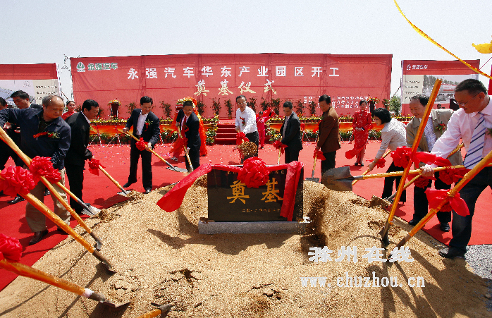 本网讯(记者 罗孝海 施 璇)4月23日上午,总投资30亿元的永强汽车华东产业园在滁州经济技术开发区举行隆重的奠基仪式。市委副书记、代市长张祥安出席并宣布项目开工,市领导张裕发、李耀才、袁华、何希勇、徐发成、王图强、汪建中、徐崇华,滁州城市职业学院院长黄修玉及东莞永强汽车制造有限公司董事长陈达强等参加奠基仪式,并为项目开工建设奠基培土。市经济技术开发区管委会主任邢高主持仪式。