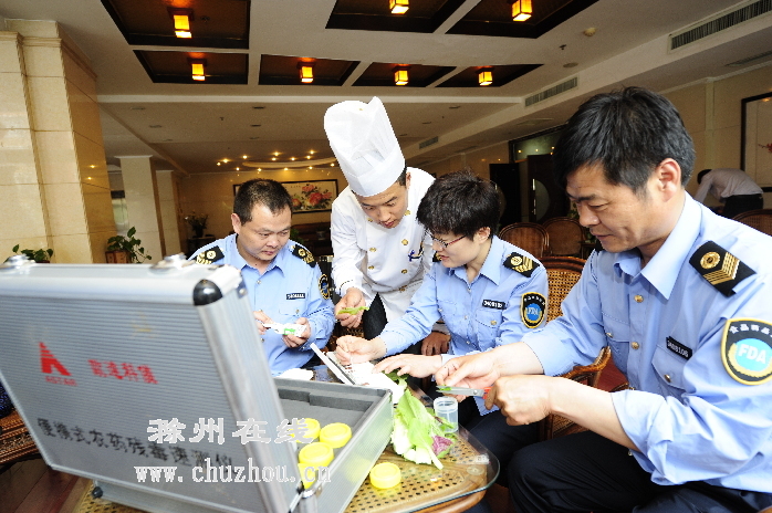 本网讯 4月24日至26日,安徽省大学生田径运动会在滁城举行,昨日上午,记者跟随市食品监督所工作人员对相关接待酒店食品安全状况展开突击检查。