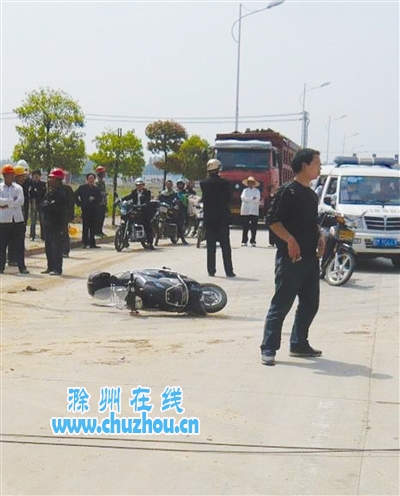 记者包增光核实报道:接到市民举报后,辖区滁州交警乌衣中队火速赶到,现场情景不禁让民警紧张起来。原来,三根拇指粗的高压电线垂在路面,约半米开外倒着一辆电瓶车。高压线的一端连在马路东侧电线杆上,另一端挂在路西工地一辆自卸车顶上。可怕的是,交错的三根电线,正噼里啪啦冒着火星。