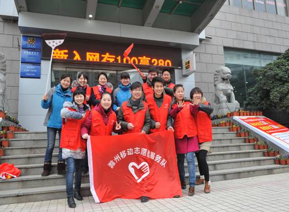 志愿者队伍。滁州移动志愿者服务队的规模和影响力正在不断扩大,成员由2008年刚成立时的8名志愿者增加到目前的220余人,志愿者队伍由1支发展到7支,其发展速度由此可见,与此同时,服务队的影响力也在不断增大。为了提高服务队的整体素质,所有队员都是经过精挑细选的党、团员骨干和入党积极分子。从2008年至今先后开展各类志愿服务活动数百次,志愿者们深入社区、乡村和社会福利院,累计为群众解决实际困难上千次,社会捐助20余万元。志愿者服务队一直坚持“投身公益,奉献社会”的服务宗旨,秉承无私奉献的服务精神。经过四年的发展,志愿者服务队的管理越来越规范化,制定了完整的组织章程以及管理条例,如《滁州移动志愿者组织条例》、《滁州移动志愿者考核管理办法》等。