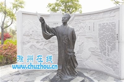 吴楚文史:吴楚文史景观带位于西涧路与丰乐大道之间,主要包括吴楚史书广场、摩陀岭休闲小径等景点。其中,吴楚史书广场中心为铜雕翻开页的史书,记载着皖东文化的起源——吴楚文化的历史概况;环绕史书的文化灯柱上雕刻着滁州城的历代地名;沿着记功柱通往凭眺码头的栈道边伫立着琅琊王司马睿的雕像,其背景墙上记述西晋“八王之乱”时,琅琊王司马睿在滁州西南摩陀岭避难,琅琊山因此而得名的历史传说。