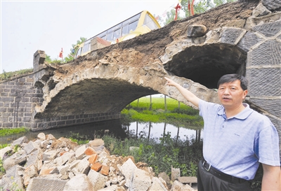 5月9日,记者乘车沿涧来路实地查看。在涧来路28公里处,记者看到路边一家石料场正在生产,石料像几座小山一样堆在路边等待运走。离公路六七米,有一个面积1000多平方米、深达10多米的深坑,这个深坑是这家石料厂开采原料形成的,这不仅对公路路基产生影响,而且给过往车辆通行带来安全隐患。在明光自来桥镇的自来桥南桥,桥两端的“危桥”标志十分醒目,桥梁两侧护栏出现不同程度外移,桥台和桥梁腹拱多处开裂,桥面两侧新设置了路障。涧来路15公里处桃园桥,桥梁一侧栏杆已坍塌,桥面损坏严重。白沙王道班附近路段,路面损毁严重,坑洼不平,路面上原有沥青面层不复存在,下面层被辗压到路面上,路边还有从石料车上倾倒下来的石料。像这样的路面,涧来路明光段随处可见。