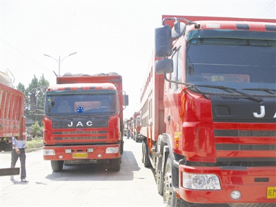 《皖东晨刊》16日对涧来路因遭受超载运料车辗压、损坏严重的情况进行报道。昨天上午,记者又接到报料电话,称涧来路沿线明光市涧溪镇居民因为超载运料车将街道路面压坏,车辆通行产生的灰尘和噪声严重影响他们的生产生活,将百余辆超载运料车堵在街道上。记者随即赶往明光市涧溪镇采访了解情况。