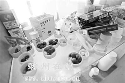 王翔和弟弟吃的药都提前分好,放在瓶盖上。