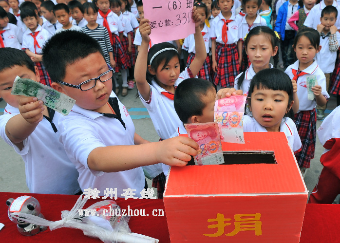 记者现场看到,低年级的孩子个头小,够不着捐款箱,他们就踮起脚尖,十分吃力地将钱塞进去。据校方介绍,有些低保户家庭的孩子也来了,将自己难得的零花钱捐了出来。在全校师生的热情帮助下,当天共筹得爱心款126587元。