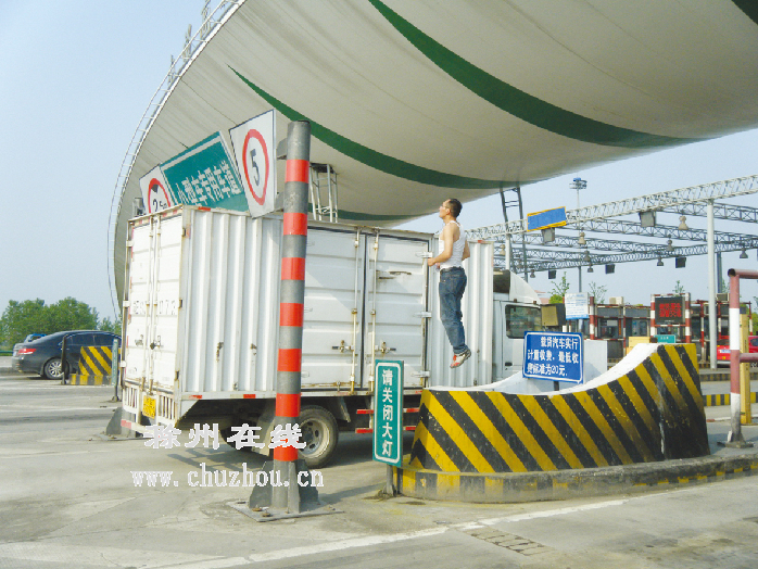 报料内容:近日,宁洛高速公路滁州曹庄收费站,一辆小货车被限高标识牌卡住了。