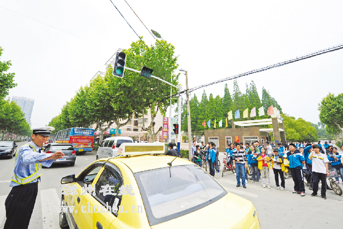 原来,因为明光路跨线大桥贯通东西,清流路大桥又正在封闭施工,使得二中门口平时车流量特别大,尤其在上下学高峰期,川流不息的车辆直接威胁师生的人身安全。鉴于此,滁州交警部门在学校门口设置一组信号灯,放学时由门卫负责开启,确保学生安全平安过马路;其他时间,信号灯完全关闭,来往车辆畅通无阻。