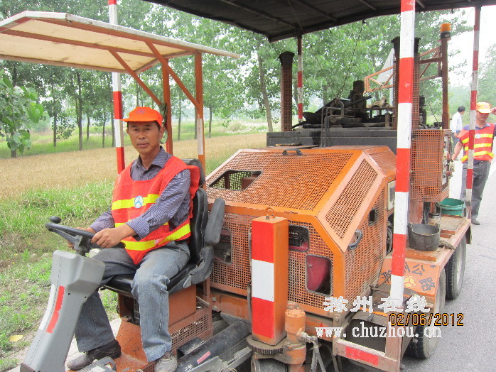 “切槽、点油、撒沙子、清扫”。上午9点半,当记者见到汪守明时,他们已经在公路上工作三个小时,路面上许多裂缝已经被他们“消灭”干净。中等身材,皮肤黝黑,一条褪色的牛仔裤加上一双破旧的皮鞋,让汪守明看来起来非常朴实。汪守明告诉记者,1979年,高考落榜的他在父亲的建议下来到公路局工作。上世纪九十年代初,由于工作出色,汪守明转为公路局的一名正式员工,并先后担任程桥和高塘道班班长。2004年,定远公路分局组建全市公路系统第一支专门从事路面日常修补和抢修抢险等突发性工作的小修养护队,局领导点名要汪守明担任队长。汪守明二话没说,挑起重任。从此,他带领养护队整日奔波在200多公里的干道上修补路面,开展抢修抢险等工作。定远公路分局党总支书记项守金告诉记者,他们小修队还经常被安排到其他县(市、区)参加抢修抢险工作。就在不久前,汪守明和他的工友们在104国道奋战一个月,高标准地完成灌缝养护任务。