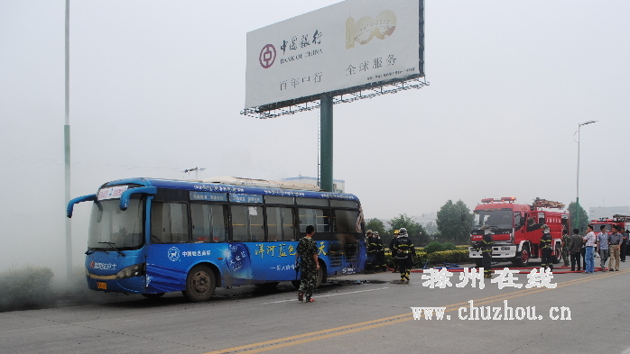 本网讯6月12日,天长市一辆行驶的公交车突然起火,幸得公安民警和消防官兵及时扑救,未酿成大祸。