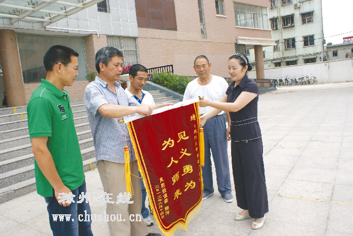 昨天上午,蔡萍和父亲来到凤阳三中,当面将写有“见义勇为为人师表”的锦旗送给了几位恩人,表达了心中深深的敬意。“淮河水那么深,他们是冒着生命危险救我母亲,我们一家会永远记住他们的恩情。”采访中,蔡萍感动地说。