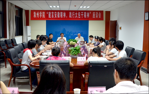 章浩希望全校师生员工积极参与“安徽精神”大讨论活动,把对“大包干精神”的理解、对“安徽精神”的提炼,与正在开展的滁州学院大学精神凝炼活动相结合,与庆祝建党91周年系列主题教育活动相结合,与大学生暑期“三下乡”社会实践活动和志愿服务活动相结合,与推进文明创建活动相结合,与迎评促建活动相结合,为较高水平应用型本科院校建设和迎评促建工作,提供强大的精神动力和思想保证。