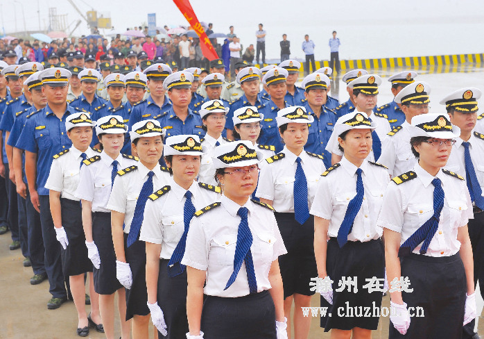 参与演练的海事、运政、公安等人员列队接受检阅。