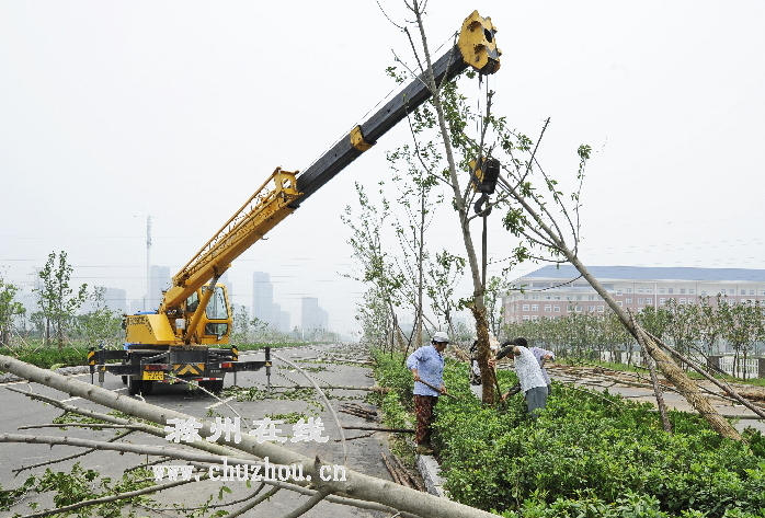 在醉翁路与西涧路交叉口处,记者看见两辆吊车开始起吊倒地树木,让其归位。几十个工人忙着清理树叶,帮着扶起倒地的行道树,并回填土。据介绍,风雨过后,园林部门就连夜对行道树进行巡查,并及时处理了影响交通的树木。目前,市重点局已经要求各施工单位尽快安排人员扶正行道树,要求重栽的行道树必须打好支撑,防止二次倒伏。