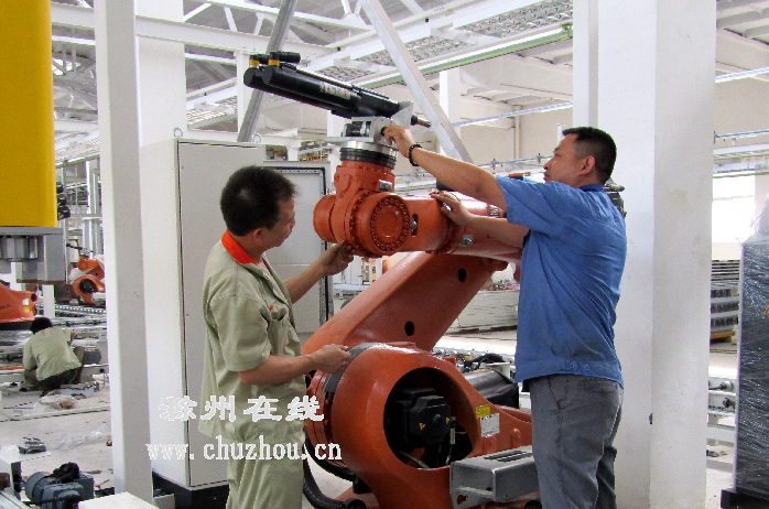 技术人员在精心调试负责连杆螺栓拧紧工作的机器人。姬朝晖 戴有胜摄