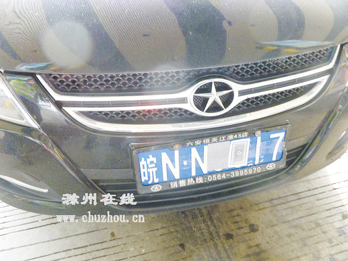 当天下午14时许,一辆黑色轿车由合肥方向驶入吴庄道口,排队等待缴费。这时,滁州交警卡口大队民警发现,这辆车的前后牌照都被两张扑克牌遮挡,仅露出“皖NN**17”字样。看到警察,车内四男一女神情异常紧张。