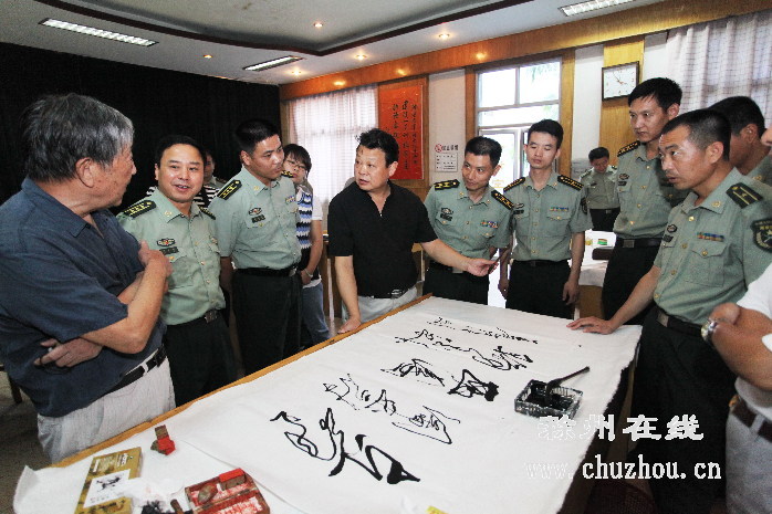 滁州:军民一家亲 书画表真情 2012-07-30 08:00 我要评论0 扫描到手持设备 字号: 核心提示: 军民一家亲 书画表真情 值此建军85周年之际,7月27日下午,由市政协书画社主办的“书画家走进军营”活动在滁州预备役师举行。 值此建军85周年之际,7月27日下午,由市政协书画社主办的“书画家走进军营”活动在滁州预备役师举行。市政协书画学会部分老中青书画家用书法、绘画的形式为官兵们送去文化大餐,表达对人民子弟兵的深情厚谊。 图为书画家们在为部队官兵挥毫泼墨。王 景 陈 放文 潘晓明摄 微笑 流汗 难过 羡慕 愤怒 流泪 复制网址 打印 收藏 分享到: 0