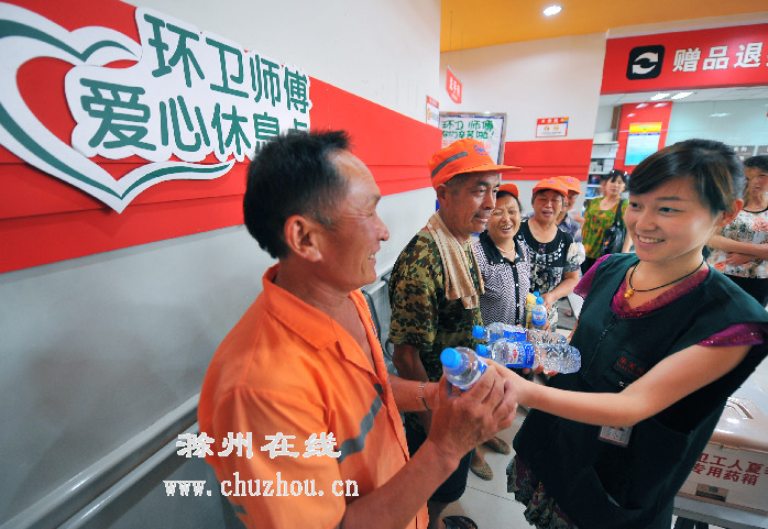 “这里真凉快!”昨天,天长路、南谯路的环卫工人们闻讯来到乐天玛特超市。摘下遮阳帽,“咕嘟咕嘟”大口喝着水,64岁的邵明华兴奋地说:“这待遇,真高级。”