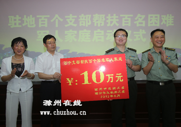 核心提示: 百个党支部帮扶百名军人困难家庭 8月1日上午,市双拥工委、市直工委在驻滁73091部队举行“市直百个党支部帮扶百名军人困难家庭”启动仪式。