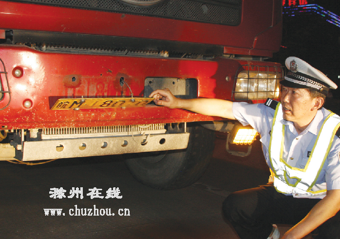 记者包增光核实报道:当天晚上22时许,滁州交警将该车拦下,发现其不仅存在违法闯禁区,还有超载、故意遮挡车牌等违法行为。民警在检查车辆前部时,发现车牌号“皖M1**7*”中的“1”和“7”,由原来的黑色被涂成和车牌底色一样的黄色,如果不靠近车前,很难识别出这两个数字,更别说10米、20米之外的“电子警察”了。