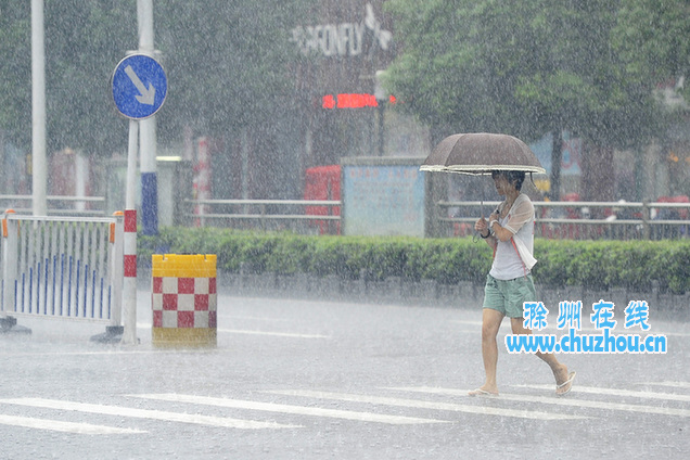 昨日中午,滁城市民在暴雨中穿行。记者 计成军摄