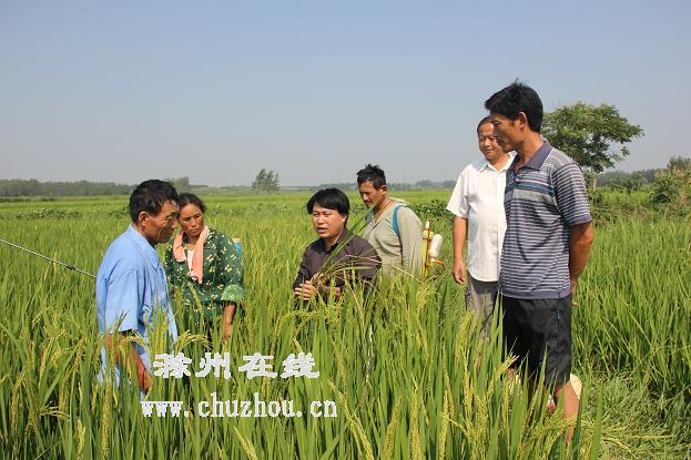 当前正值水稻生长中后期,水稻极易受病虫危害,南谯区章广镇高度重视水稻病虫害防治工作,召开防治专题工作会议,印发防治资料5000余份,还通过科技示范户和短信平台发送短信,让农民朋友及时掌握防治适期。目前,该镇4.5万亩水稻全部进行了一次防治。图为农技专家深入田间地头指导病虫害防治。孙怀发 何 毅摄