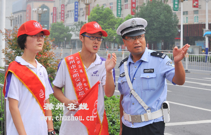 滁州:中学生自发上街“执勤” 2012-08-16 08:00 我要评论0 扫描到手持设备 字号: 8月14日,滁州中学高一(2)班汪鹿鸣等9名同学自发走上街头,开展暑期社会实践活动。他们在交警指导下,头戴小红帽、手持指挥旗、身披“滁州市文明交通志愿”绶带,在城区主要路口“站高峰”疏导交通,体验交警高温天气下坚守执勤的艰辛。记者 王家国摄 微笑 流汗 难过 羡慕 愤怒 流泪 复制网址 打印 收藏 分享到: 0