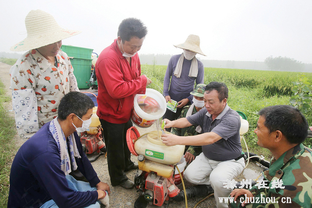 8月17日上午,植保专家在南谯区沙河镇农业部水稻高产示范田指导农民合理配制农药科学治虫。面对前期稻飞虱虫量大、峰次多、田间虫卵量高、波及范围广的严峻形势,全市上下积极行动,全力防控。700多名农技人员深入田头扎实开展农技服务工作,近千个病虫专防组织实施农机化灭虫。目前,田间稻飞虱虫情已得到有效控制,防控工作取得了阶段性成效。
