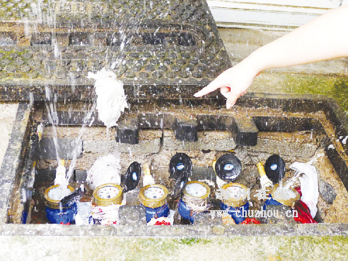 被砸坏的自来水表不停往外喷水。记者 计成军摄