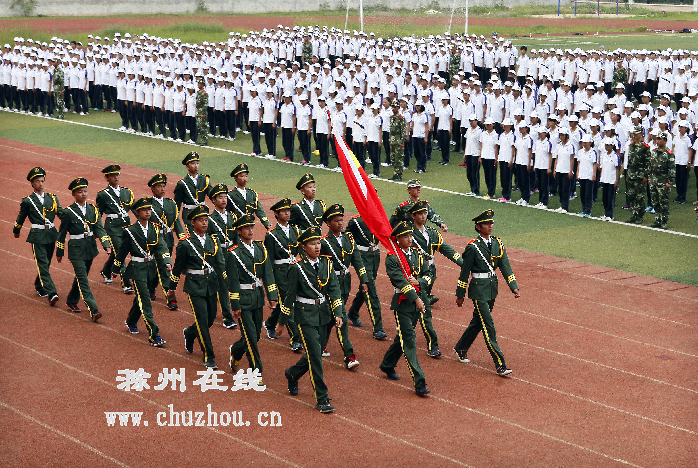 滁州中学高一新生展示军训成果 2012-08-30 08:00 我要评论0 扫描到手持设备 字号: 核心提示: 高一新生展示军训成果 8月29日下午,滁州中学2012年高一新生军训成果展示在该校运动场举行,1255名高一新生进行了阅兵汇报表演。 8月29日下午,滁州中学2012年高一新生军训成果展示在该校运动场举行,1255名高一新生进行了阅兵汇报表演。2012级新生军训从8月25日开始,为期5天,武警滁州市支队直属中队承担了今年军训任务。检阅仪式上,22个方阵迈着整齐的步伐,精神饱满地依次通过主席台,充分展示了高一新生朝气蓬勃、奋发向上的精神风貌。 图为学生仪仗队通过主席台接受检阅。卢志永/图蒋 波/文 微笑 流汗 难过 羡慕 愤怒 流泪 复制网址 打印 收藏 分享到: 0