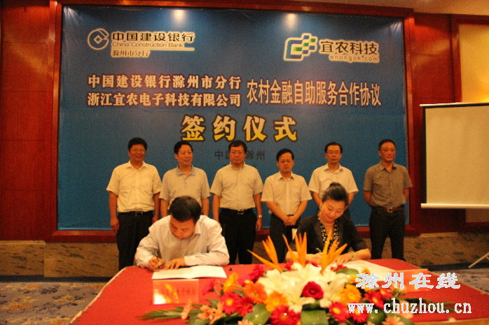 滁州市举行金融服务合作协议签约仪式 2012-09-03 08:00 我要评论0 扫描到手持设备 字号: 八月三十日,建行滁州分行与浙江宜农电子科技有限公司举行金融服务合作协议签约仪式,必将为我市广大农民带来“足不出村”安全、经济、便捷的现代金融服务,开启建行安徽省分行服务全省广大农村的新篇章。詹福乐摄 微笑 流汗 难过 羡慕 愤怒 流泪 复制网址 打印 收藏 分享到: 0