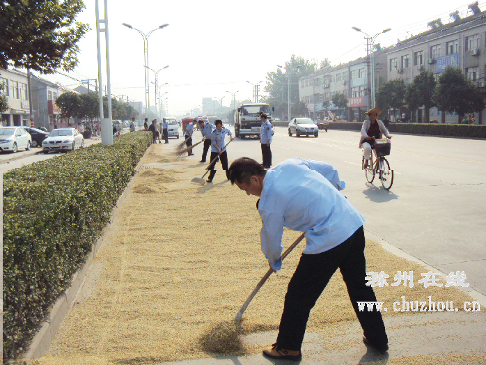 对此情况,连日来,滁州市城管琅琊分局不间断地对位于城乡结合部的扬子路和外环世纪大道进行巡查监控,及时宣传纠正和劝告制止农民兄弟的占道晒粮行为,有效排除了交通安全隐患。