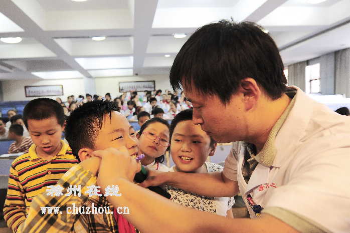 昨日,市疾控中心、市二院联合开展了街头宣传义诊活动。南谯区卫生局和龙蟠社区卫生服务中心组成的“爱牙日”小分队也于日前“进驻”龙蟠小区,对近百名儿童进行了初步检查。检查发现,儿童蛀牙状况不容乐观,近七成接受检查的儿童有虫牙,部分儿童有一颗蛀牙,严重一些的儿童已经“连中三颗”。