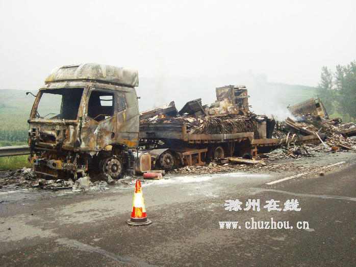 接到报警后,滁州交警高速二大队民警立即赶到,同时联系消防、路政和施救人员赶来灭火。民警称,车身燃烧的熊熊火焰,染红了半边天空,让人无法靠近。直到消防官兵赶到,前后经历将近一个小时,大火终于被扑灭。