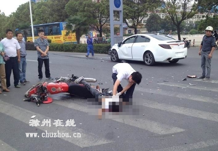 本网讯 日前,滁城会峰西路与丰乐大道交汇路口处,一辆轿车与一辆摩托车发生碰撞,骑摩托车男子伤势不轻。