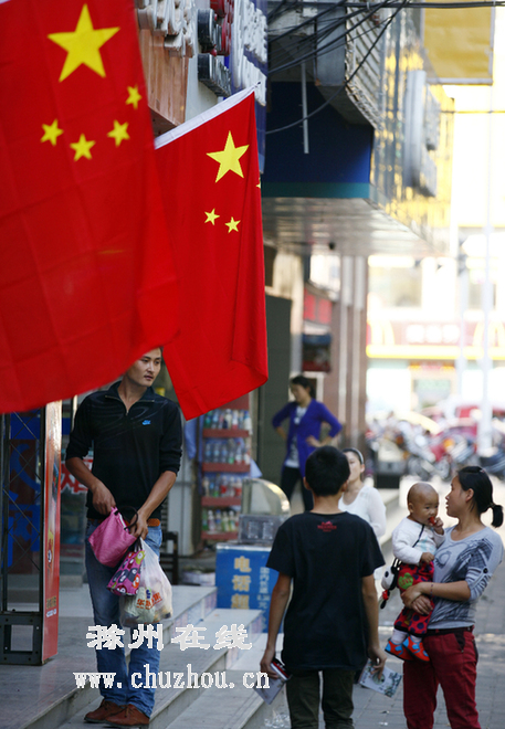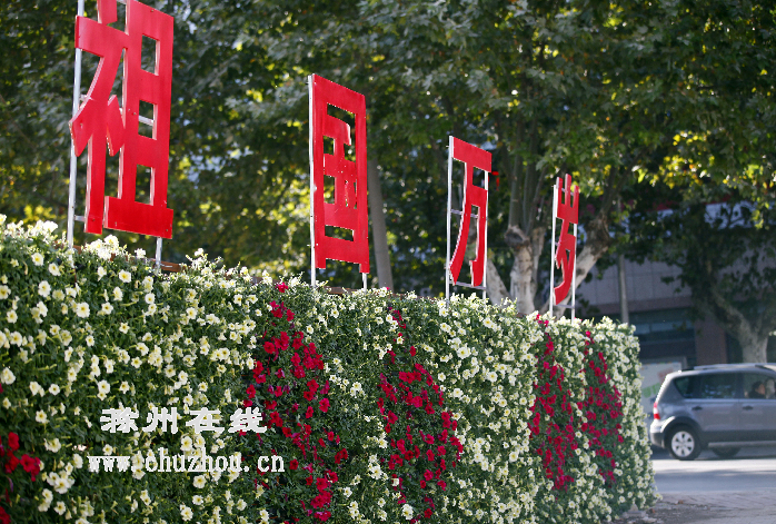 中秋、国庆佳节来临之际,大滁城街道两旁鲜艳的国旗高悬,主要路口布满五彩花墙,处处妆扮一新,充满浓厚的喜庆、欢乐、祥和的节日气氛。 卢志永摄