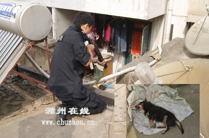 滁州特警一大队民警接到求助,携带枪支迅速赶到。将围观群众疏散至安全地带后,特警队员登上一处安放太阳能的露台,择机开枪。此时,疯狗似乎感觉到处境,变得更加疯狂,不停四窜吼咬,这给瞄准射击带来极大难度。经过一段时间的调整瞄准之后,特警队员选择黑狗短暂停留的瞬间,果断扣动扳机。“砰”地一声枪响之后,黑狗应声倒地。