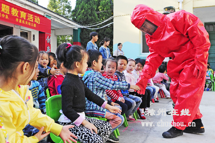 核心提示: 娃娃学消防 10月17日,南谯区消防大队的消防官兵们带着消防器材走进市直机关幼儿园,为幼儿园的小朋友们上了一堂消防安全主题教育课。