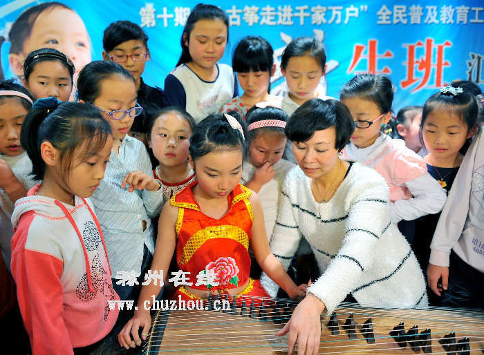 核心提示: 古筝演奏家来滁授艺 日前,由中国古筝艺术家联合会主办的滁州地区第十期“让古筝走进千家万户”全民普及教育工程活动在滁城举行。