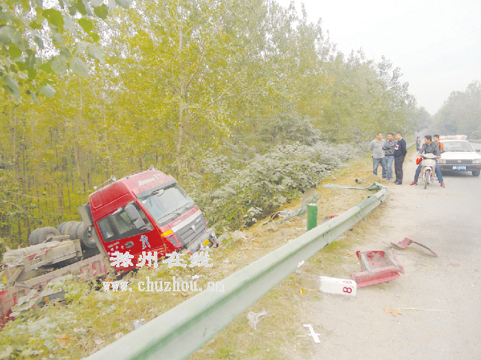 接到举报后,路政执法人员立即驱车赶赴现场。经调查得知,由于该货车系空车,车速比较快,为避让行人及车辆急打方向盘,致使车辆撞坏防撞护栏冲下护坡,所幸没有造成人员伤亡。据现场勘验,此事故造成36米金属护栏损坏。路政执法人员随后向事故车主宣传了《公路法》、《公路安全保护条例》等相关法律法规,要求车主对造成的路损进行赔偿,事故车主当场承认了错误,并表示会尽快到公路部门按照有关国家标准进行赔偿。目前,该案正在进一步处理中。