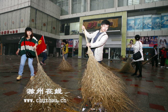 当天,124名滁州学院大一新生,在老师的带领下,走上街头,体验环卫工作。