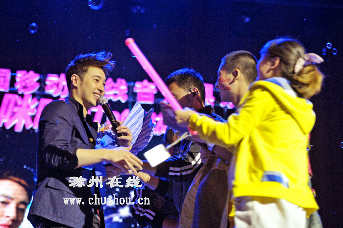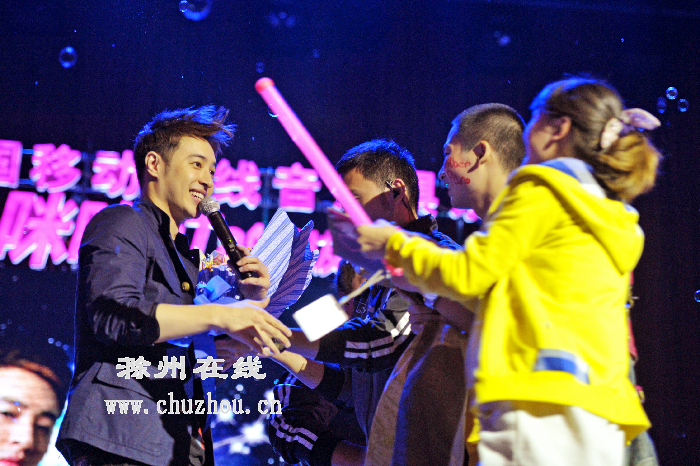 本网讯“哇,太帅了!”,“啊,好阳光啊!”,“太激动了!”……大明星潘玮柏来滁,引发一众歌迷都犯起了“花痴”。11月2日晚,应滁州移动无线音乐俱乐部的邀约,“嘻哈歌王”潘玮柏现身滁州大剧院,大墨镜、黑西服、机车靴……这个帅气阳光的大男孩一出场,现场立马尖叫连连,陷入了疯狂,记者赶忙趁机“逮”着这位大明星采访一番,而他也盛情邀约:“滁州的朋友,来和我一起释放自己!”